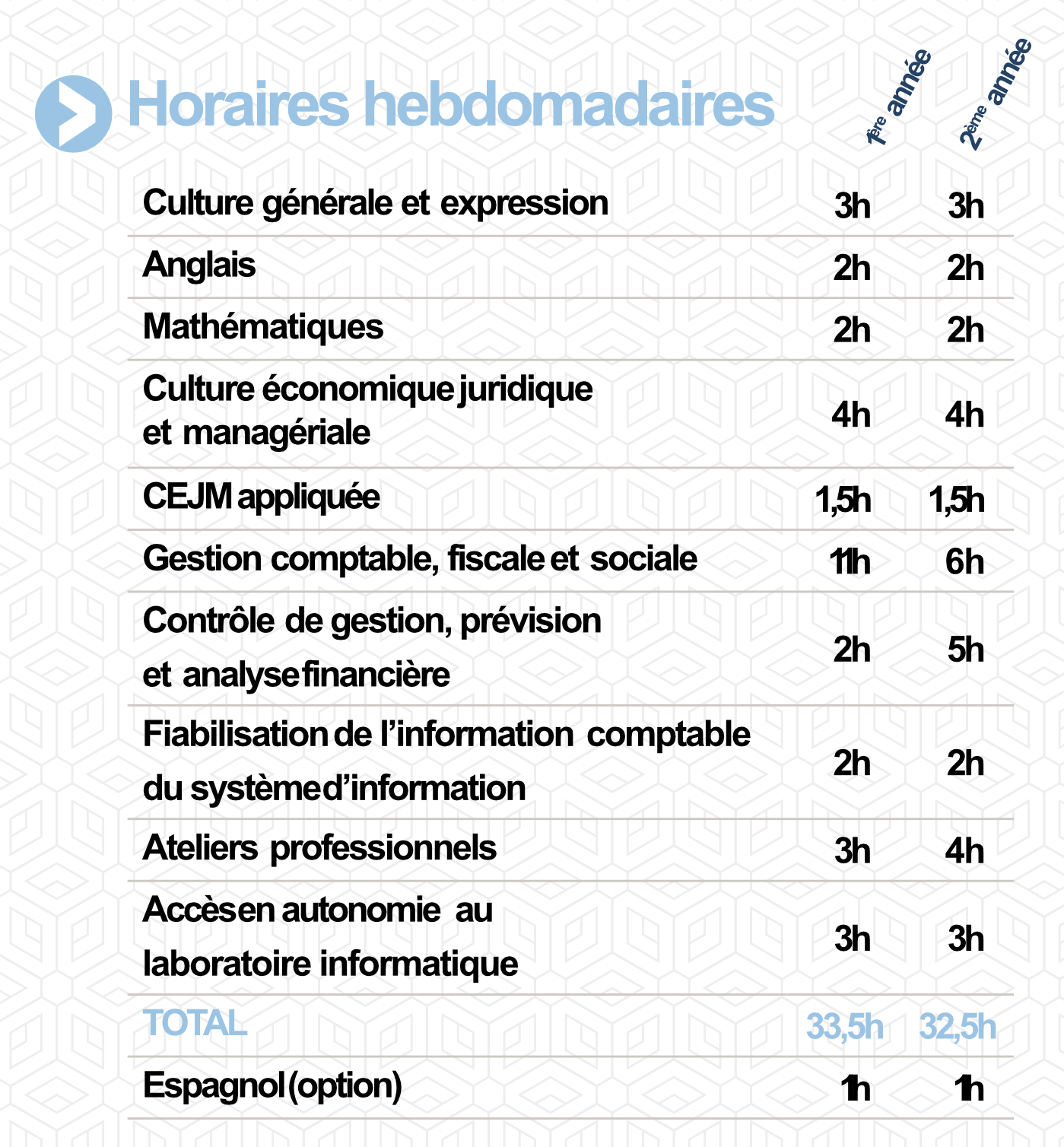 - Disciplines informatiques, comptables, sociales, et fiscales (14 heures).